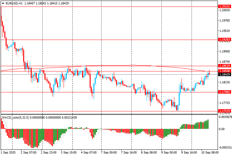 ЕUR/USD: пара торгуется с ростом ($1.1800 до $1.1850), продолжая увеличение, начатое в ходе вчерашних американских торгов.