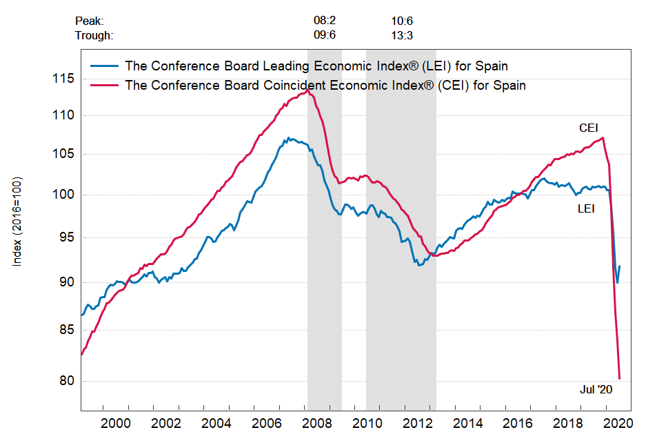 Результаты исследований, опубликованные Conference Board, показали: по итогам июля ведущий экономический индекс (LEI) для Испании вырос на 2,0 процента, и составил 91,8 пункта (2016=100). Напомним, индекс зафиксировал снижение на 1,7 процента в июне и падение на 4,2 процента в мае. В течение шести месяцев (с января по июль 2020 года) показатель упал на 8,7 процента после снижения на 10,9 процента за предыдущий шестимесячный период (с декабря 2019 года по июнь 2020 года).