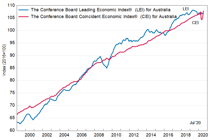 Результаты исследований, опубликованные Conference Board, показали: по итогам июля ведущий экономический индекс (LEI) для Австралии упал на 0,3 процента, и составил 106,6 пункта (2016=100). Напомним, индекс зафиксировал повышение на 0,2 процента в июне и падение на 0,5 процента в мае. В течение шести месяцев (с января по июль 2020 года) показатель упал на 0,5 процента после увеличения на 0,3 процента за предыдущий шестимесячный период (с декабря 2019 года по июнь 2020 года).