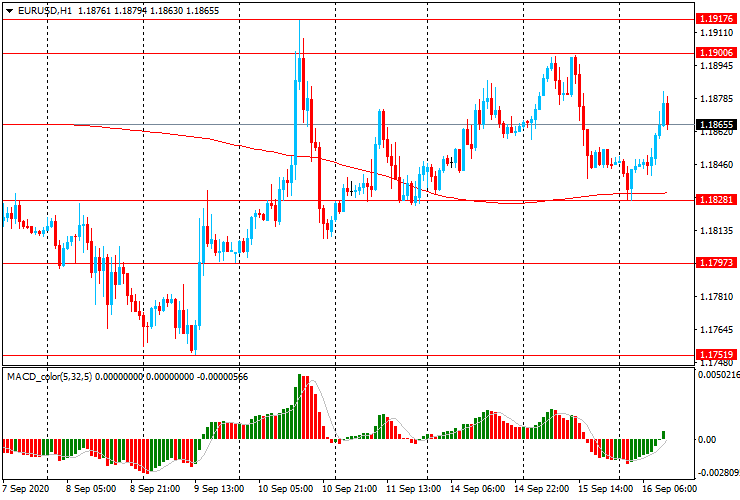 ЕUR/USD: пара торгуется с ростом (с $1.1830 до $1.1880), вернув большую часть позиций, утраченных в ходе вчерашних американских торгов.