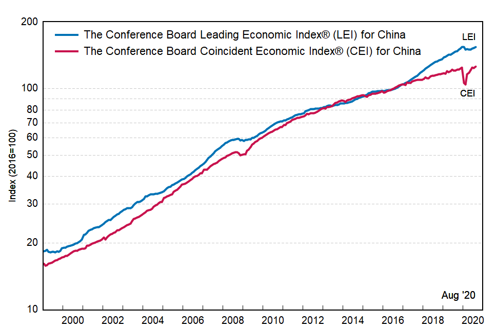 Результаты исследований, опубликованные Conference Board, показали: по итогам августа ведущий экономический индекс (LEI) для Китая вырос на 1,2 процента, и составил 154,5 пункта (2016=100). Напомним, индекс зафиксировал увеличение на 0,7 процента в июле и повышение на 1,0 процента в июне. В течение шести месяцев (с февраля по август 2020 года) показатель вырос на 3,1 процента после снижения на 1,0 процента за предыдущий шестимесячный период (с января по июль 2020 года).