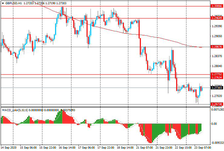 GBP/USD: пара торгуется в диапазоне $1.2675-1.2745 - около двухмесячного минимума, после резкого снижения в ходе вчерашних американских торгов с $1.2870 до $1.2710.