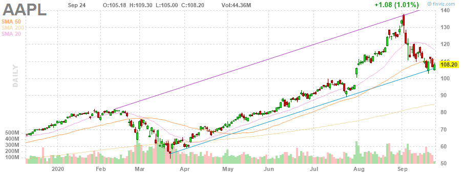 На текущий момент акции AAPL котируются по $108.20 (+1.01%).