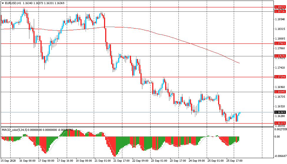 В пятницу пара EUR/USD торговалась с понижением и закрыла день в красной зоне около цены $1.1625. Сегодня пара торговалась в узком диапазоне $1.1615-35, оставаясь вблизи 9-недельного минимума. На часовом графике EUR/USD все еще торгуется ниже линии скользящей средней МА (200) Н1 ($1.1750). На четырехчасовом графике ситуация аналогичная. Исходя из вышесказанного, вероятно, стоит придерживаться южного направления в торговле и пока пара остается ниже MA 200 H1, необходимо искать точки входа на продажу на формирование коррекции.