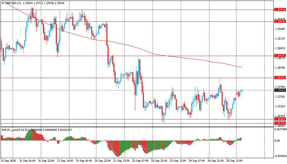 В пятницу пара GBP/USD торговалась разнонаправлено в диапазоне $1.2690-$1.2805 и закрыла день без существенных изменений. Сегодня пара также торговалась в узком диапазоне $1.2750-70, оставаясь вблизи пятничной цены закрытия. На часовом графике GBP/USD все еще торгуется ниже линии скользящей средней МА (200) Н1 ($1.2830). На четырехчасовом графике ситуация аналогичная. Исходя из вышесказанного, вероятно, стоит придерживаться южного направления в торговле и пока пара остается ниже MA 200 H1, необходимо искать точки входа на продажу на формирование коррекции.