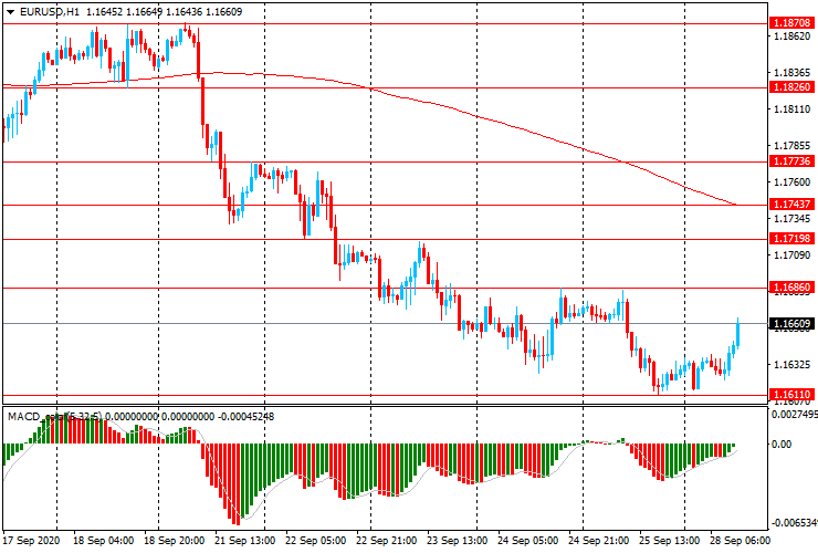 ЕUR/USD: пара немного выросла с $1.1615 до $1.1665, но остается около двухмесячного минимума