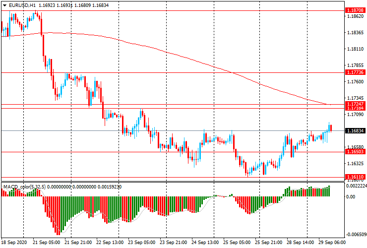 ЕUR/USD: пара продолжает вчерашний рост и немного выросла с $1.1660 до $1.1700.