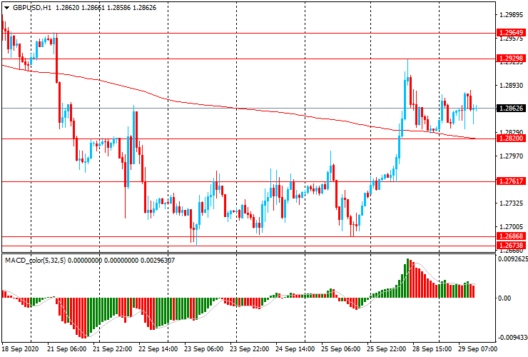 GBP/USD: пара торгуется в диапазоне $1.2830-90, после резкого роста вчера с $1.2775 к недельному максимуму $1.2930.