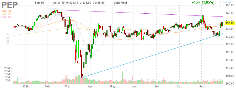 Согласно обнародованному отчету, прибыль компании PepsiCo (PEP) по итогам третьего квартала 2020 финансового года (ФГ) достигла $1.66 в расчете на одну акцию (против $1.56 на одну акцию в третьем квартале 2019 ФГ), что оказалось выше среднего прогноза аналитиков на уровне $1.49 на одну акцию.