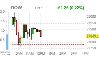 Большинство компонентов DOW в плюсе (16 из 30). Лидер роста - Walmart Inc. (WMT; +2.37%). Аутсайдер - Chevron Corp. (CVX; -1.63%).
