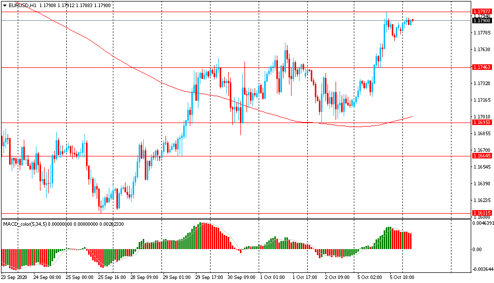 Вчера пара EUR/USD торговалась с повышением и закрыла день на положительной территории около цены $1.1780. Сегодня пара торговалась в узком диапазоне $1.1780-90, оставаясь вблизи вчерашней цены закрытия. На часовом графике EUR/USD пробила и окончательно закрепилась выше линии скользящей средней МА (200) Н1 ($1.1700). На четырехчасовом графике пара пока остается ниже линии MA 200 H4. Исходя из вышесказанного, вероятно, стоит придерживаться северного направления в торговле и пока пара остается выше MA 200 H1, необходимо искать точки входа на покупку на формирование коррекции.