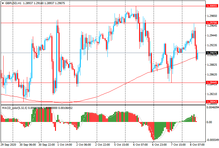 GBP/USD: к началу европейских торгов пара выросла с $1.2910 до $1.2970, но позже резко снизилась до $1.2890, и на момент написания статьи торгуется около $1.2910.