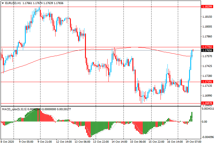 ЕUR/USD: в ходе европейских торгов пара резко выросла с $1.1700 до $1.1765,