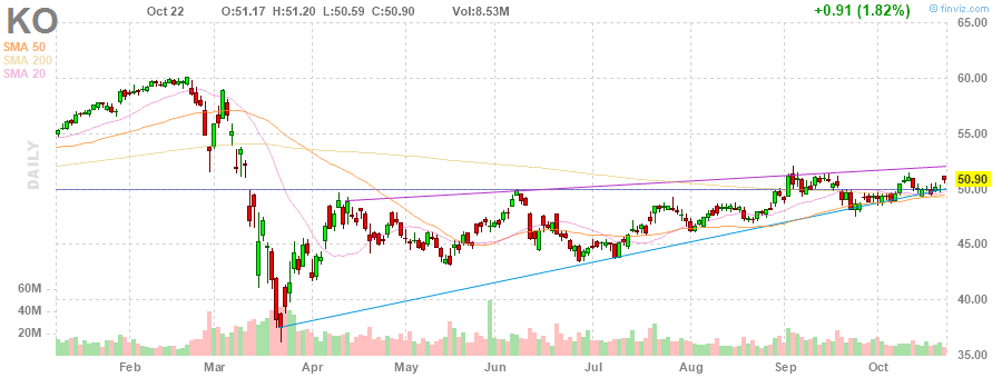 На текущий момент акции KO котируются по $50.90 (+1.82%).