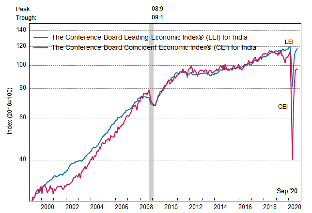 Результаты исследований, опубликованные Conference Board, показали: по итогам сентября ведущий экономический индекс (LEI) для Индии вырос на 1,4 процента, и составил 117,9 пункта (2016=100). Напомним, индекс зафиксировал повышение на 1,5 процента в августе и увеличение на 4,6 процента в июле. В течение шести месяцев (с марта по сентябрь 2020 года) показатель вырос на 8,6 процента после снижения на 3,3 процента за предыдущий шестимесячный период (с февраля по август 2020 года).