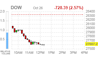 Основные фондовые индексы США демонстрируют значительное снижение, поскольку рекордный скачок заражений коронавирусом в США и тупиковая ситуация в переговорах между республиканцами и демократами о новом пакете мер стимулирования американской экономики омрачили ее перспективы в преддверии президентских выборов 3 ноября.