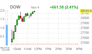 Dow | 28015.00 | +639.00 | +2.33% |