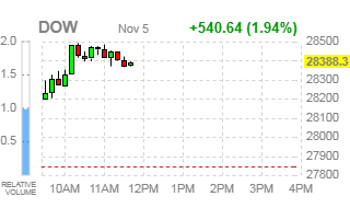 Все компоненты DOW в плюсе (30 из 30). Лидер роста - Caterpillar Inc. (CAT; +14.96%).