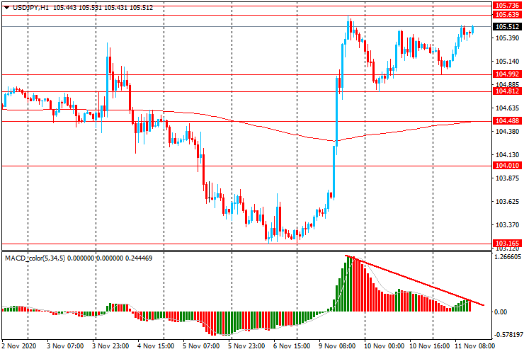 USD/JPY: пара торгуется в основном с ростом в диапазоне Y105.00-60, после резкого роста в понедельник с Y103.15 до Y105.65.
