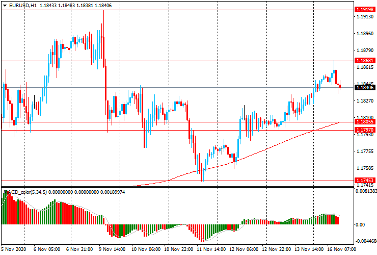 ЕUR/USD: пара торгуется в диапазоне $1.1825-70 - около недельного максимума.