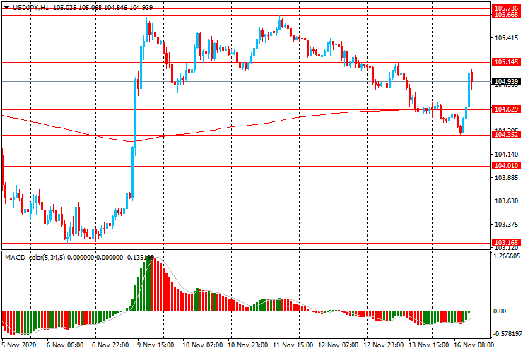 USD/JPY: с начала торгов пара немного снизилась до Y104.35, но в ходе европейской сессии резко выросла до максимума пятницы (Y105.15).