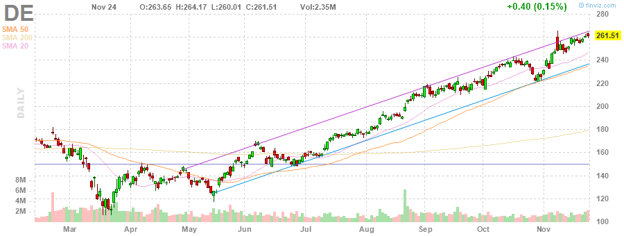 Акции DE на премаркете торговались на уровне $261.51 (0.0%) за штуку.