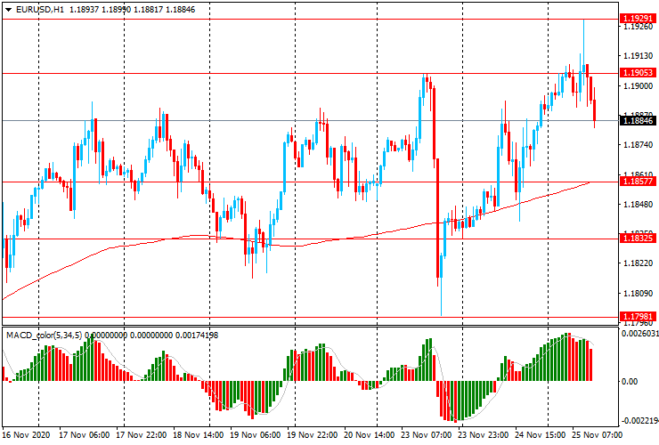 ЕUR/USD: до начала европейских торгов пара резко выросла до максимума начала сентября ($1.1930), но затем снизилась до $1.1880, утратив все набранные позиции.