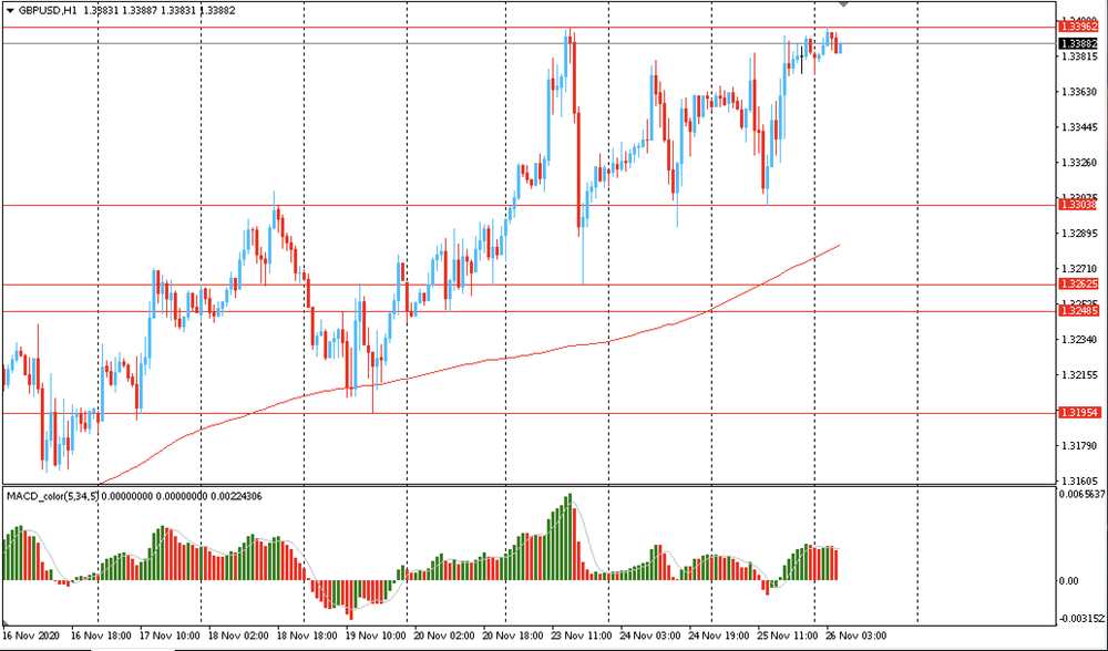 Вчера пара GBP/USD торговалась с повышением и закрыла день на положительной территории около цены $1.3385. Сегодня пара торговалась в узком диапазоне $1.3375-95, оставаясь вблизи 13-недельного максимума. На часовом графике GBP/USD все еще торгуется выше линии скользящей средней МА (200) Н1 ($1.3285). На четырехчасовом графике ситуация аналогичная. Исходя из вышесказанного, вероятно, стоит придерживаться северного направления в торговле и пока пара остается выше MA 200 H1, необходимо искать точки входа на покупку на формирование коррекции.
