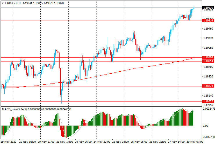 ЕUR/USD: пара продолжает расти и поднялась до нового максимального значения с начала сентября ($1.1985).