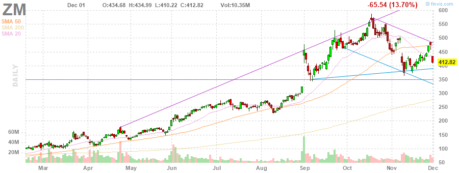 На текущий момент акции ZM котируются по $412.82 (-13.70%).
