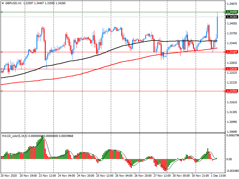 В настоящее время пара GBP/USD торгуется с повышением на 0,80%, на уровне 1,3427