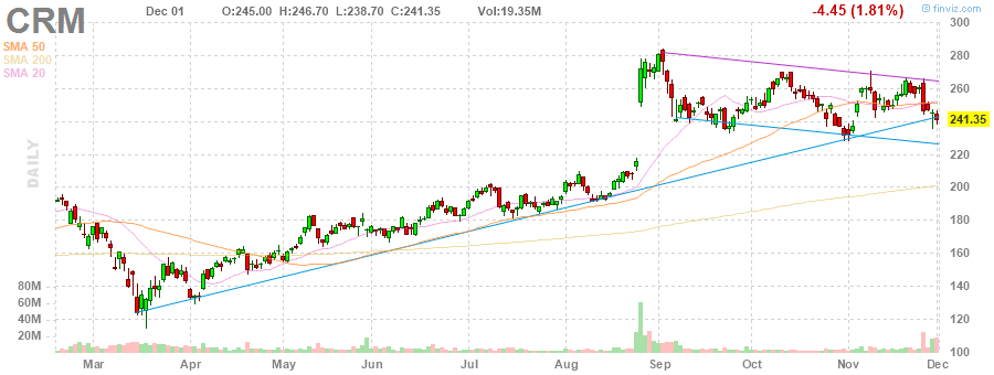 Акции CRM на премаркете снизились до уровня $228.35 (-5.39%).