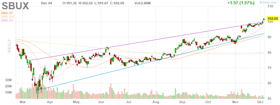 На текущий момент акции SBUX котируются по $102.09 (+1.97%).