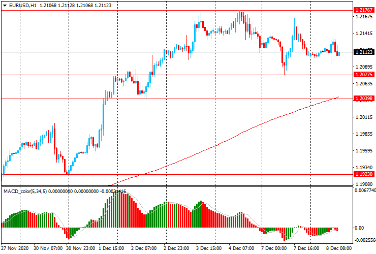 ЕUR/USD: пара торгуется в диапазоне $1.2095-1.2130, после роста на прошлой неделе к максимуму конца апреля 2018 года ( $1.2175).