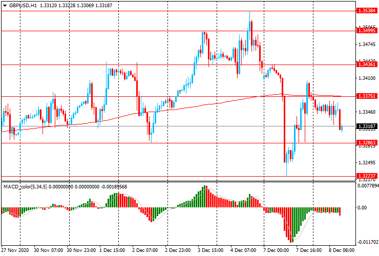 GBP/USD: пара снизилась к $1.3305 и опустилась ниже уровня скользящей средней МА (200) Н1 ($1.3375).