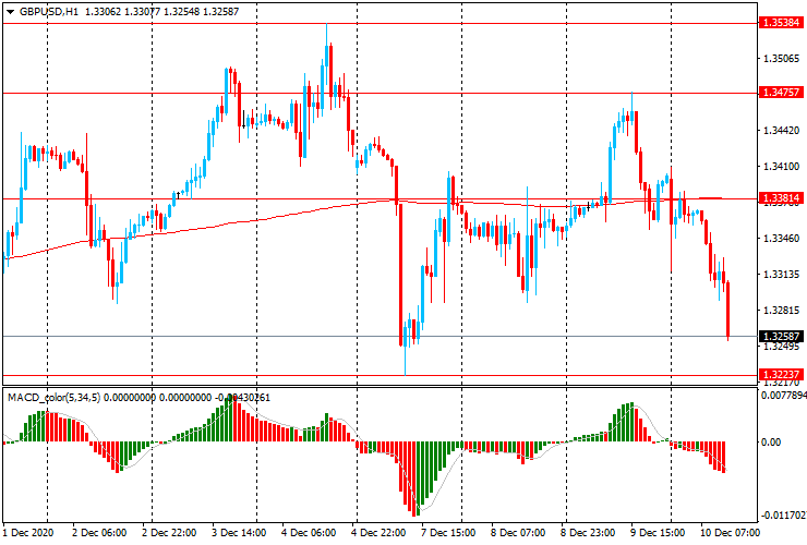 GBP/USD: пара торгуется со снижением с $1.3410 к $1.3250 и опустилась ниже линии скользящей средней МА (200) Н1 ($1.3380).