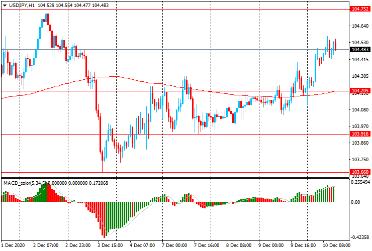 USD/JPY: пара выросла с Y104.10 до Y104.60 и поднялась выше линии скользящей средней МА (200) Н1 (Y104.20)
