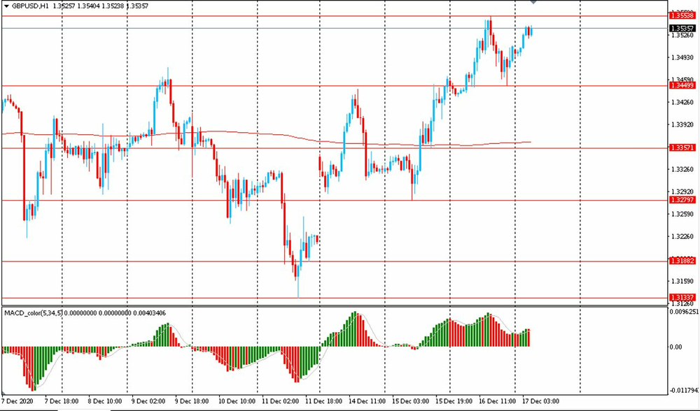 Вчера пара GBP/USD торговалась с повышением и закрыла день на положительной территории около цены $1.3505. Сегодня пара также немного выросла, поднявшись к отметке $1.3540. На часовом графике GBP/USD пробила и закрепилась выше линии скользящей средней МА (200) Н1 ($1.3360). На четырехчасовом графике пара также остается выше линии MA 200 H4. Исходя из вышесказанного, вероятно, стоит и далее придерживаться северного направления в торговле и пока пара остается выше MA 200 H1, необходимо искать точки входа на покупку на формирование коррекции.