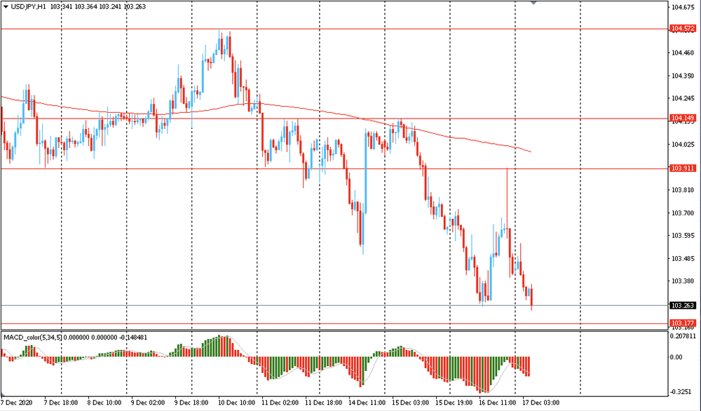 Вчера пара USD/JPY торговалась с понижением и закрыла день в красной зоне около цены Y103.40. Сегодня пара также упала, опустившись к отметке Y103.25. На часовом графике USD/JPY все еще торгуется ниже линии скользящей средней МА (200) Н1 (Y104.00). На четырехчасовом графике ситуация аналогичная. Исходя из вышесказанного, вероятно, стоит придерживаться южного направления в торговле и пока пара остается ниже MA 200 H1, необходимо искать точки входа на продажу на формирование коррекции.
