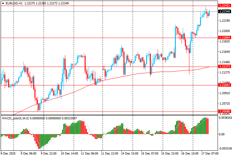ЕUR/USD: пара продолжает расти и поднялась с $1.2190 до $1.2245, достигнув максимума 24 апреля 2018 года.