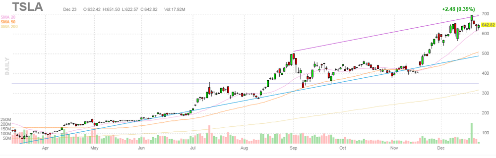 На текущий момент акции TSLA котируются по $642.82 (+0.39%).
