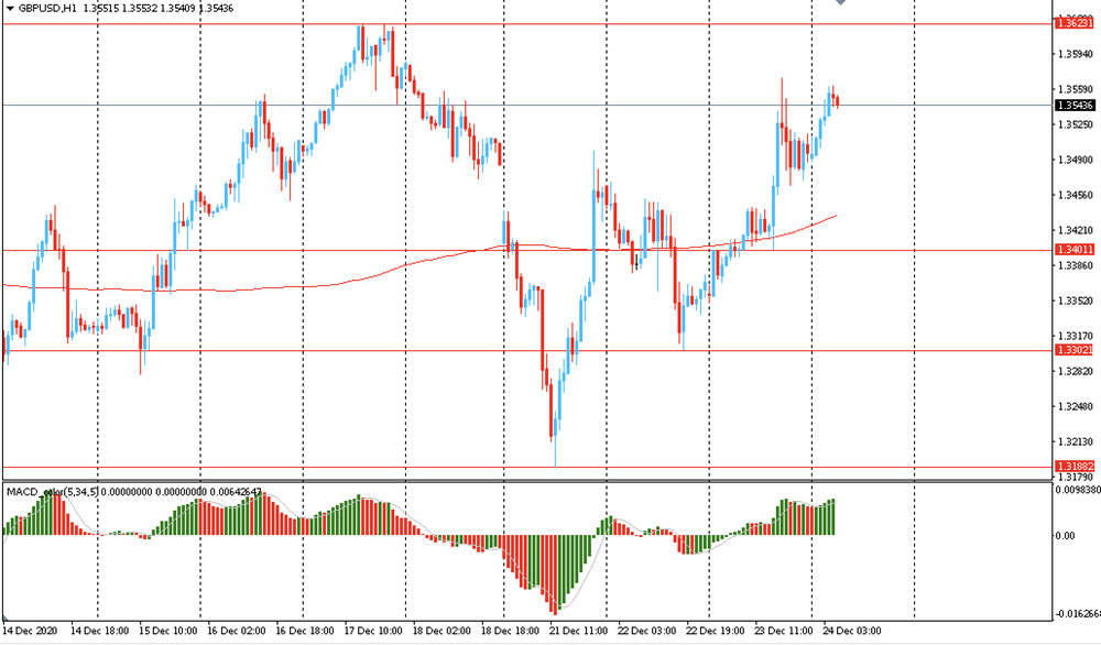 Вчера пара GBP/USD торговалась с повышением и закрыла день на положительной территории около цены $1.3495. Сегодня пара также немного выросла, поднявшись к отметке $1.3560. На часовом графике GBP/USD все еще торгуется выше линии скользящей средней МА (200) Н1 ($1.3430). На четырехчасовом графике ситуация аналогичная. Исходя из вышесказанного, вероятно, стоит придерживаться северного направления в торговле и пока пара остается выше MA 200 H1, необходимо искать точки входа на покупку на формирование коррекции.