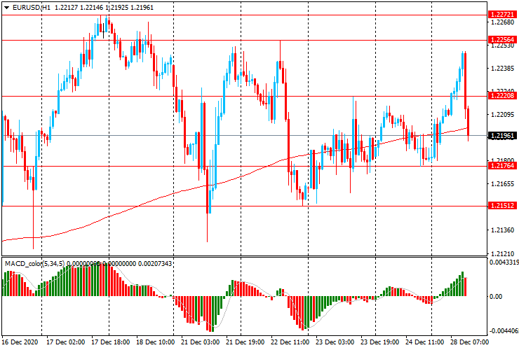 ЕUR/USD: до начала европейских торгов, пара выросла с $1.2180 до $1.2250, но позже резко снизилась до $1.2195, утратив почти все завоёванные позиции.