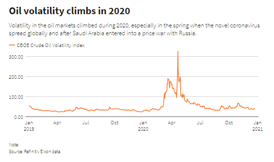 Остаток к концу 2020 года был потрачен на восстановление после этого падения, поскольку пандемия уничтожила спрос на топливо во всем мире. Хотя кратковременное снижение фьючерсов на нефть в США ниже отрицательных $40 за баррель вряд ли повторится в 2021 году, новые ограничения и поэтапное развертывание вакцин для лечения вируса ограничат спрос в следующем году и, возможно, в будущем.