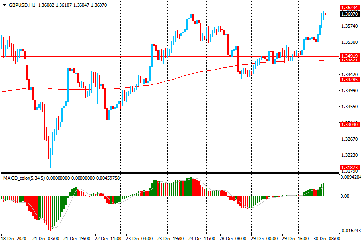 GBP/USD: пара выросла с $1.3490 к $1.3610, снова достигнув максимума начала мая 2018 года, достигнутого ранее неделю назад.