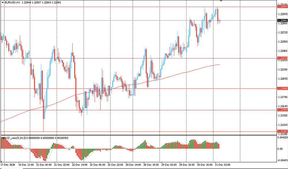 Курс евро составил $1,2291, достигнув максимума с апреля 2018 года с приростом почти на 10% за год.