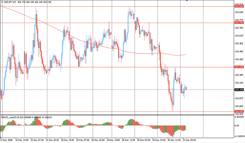 Доллар торговался на уровне Y103,15 иены, но сумел удержаться выше декабрьского минимума Y102,86.