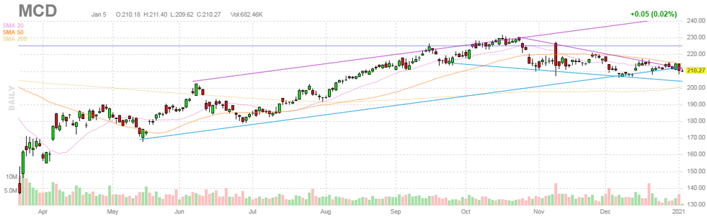 На текущий момент акции MCD котируются по $210.27 (+0.02%).