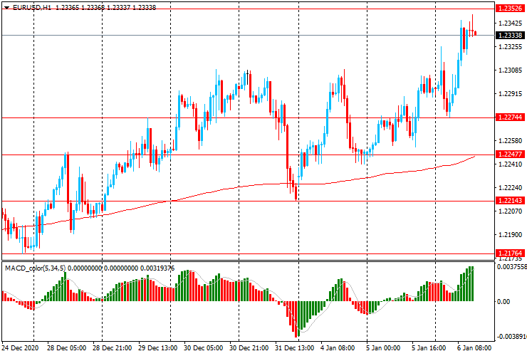 ЕUR/USD: пара выросла с $1.2275 к $1.2350, достигнув новых максимумов апреля 2018 года.