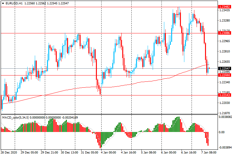 ЕUR/USD: пара резко снизилась с $1.2340 до $1.2245, отступив от новых максимумов апреля 2018 года, достигнутых вчера.